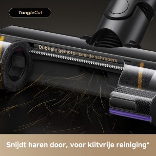 - TangleCut™ dubbele schrapers — snijden en verwijderen haren automatisch van de borstelrol; geen gedoe met vastdraaiende haren meer, perfect voor huisdiereigenaren.