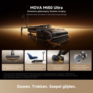 De M50 Ultra is ontworpen voor harde vloeren, tegels en laagpolig tapijt en verwijdert zowel droog vuil als vloeistoffen in één beweging. Dankzij de sterke zuigkracht van 22.000 Pa en de dweilfunctie krijg je ook vlekken en vastgehecht vuil goed weg. Voor hoogpolig tapijt is hij minder geschikt; bij twijfel kun je de zuigstand aanpassen.