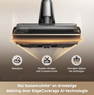 De EdgeCoverage™ AI-technologie zorgt voor driezijdige randreiniging tot aan de plint zonder dat je extra hulpstukken nodig hebt, waardoor hoeken en randen grondig schoongemaakt worden. Je hoeft alleen het apparaat normaal langs de muren te leiden; het intelligente stuursysteem volgt de bewegingen en past de reiniging aan. Dit is vooral handig bij kamers met veel hoeken en plinten.